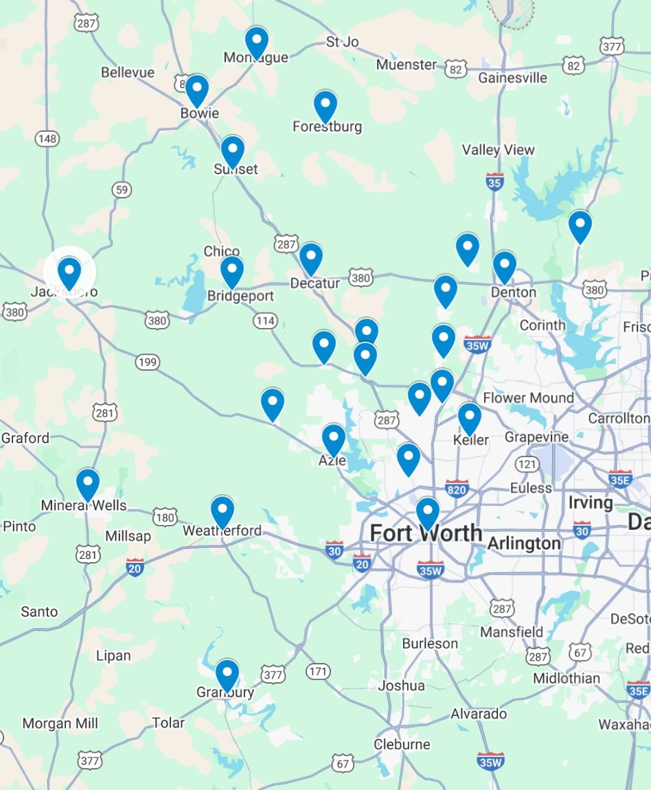 Telion Construction, LLC proudly serves homeowners and businesses across North Texas, including Haslet, Fort Worth, Keller, Roanoke, Bowie, Northlake, Justin, Rhome, Boyd, Newark, Decatur, Springtown, Weatherford, Aledo, Willow Park, Azle, Saginaw, Denton, Ponder, Argyle, Bridgeport, Paradise, Gainesville